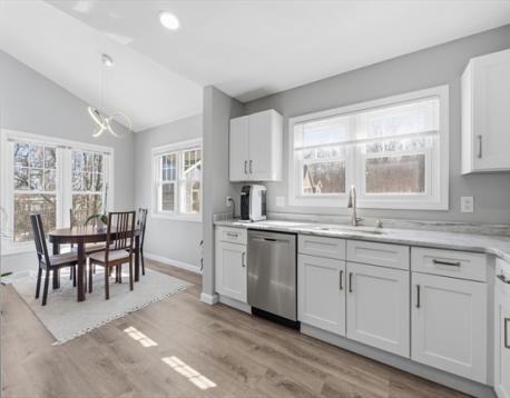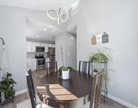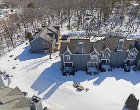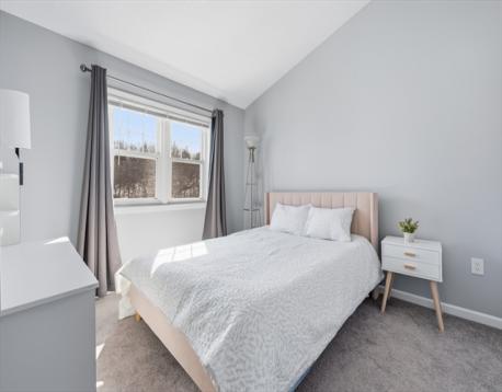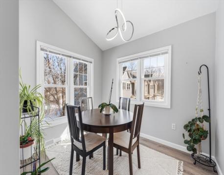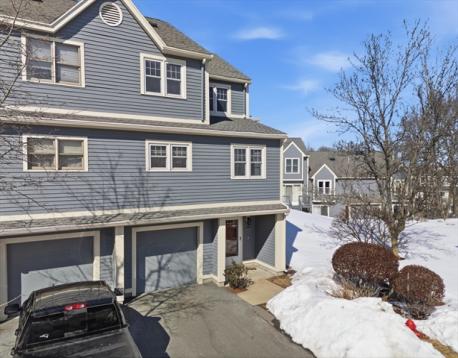 Pride of ownership shines in this rare opportunity to own a private end-unit townhouse at the very back of the desirable Stoneybrook complex, with no units behind you and peaceful surroundings. Inside, the home feels bright and open with a beautifully renovated vaulted-ceiling kitchen featuring quartz countertops, white shaker cabinetry, stainless steel appliances, recessed lighting, and a large pantry, plus a sunny dining area. The spacious and bright living room opens to a private deck—perfect for morning coffee or entertaining. Upstairs are two generous bedrooms with soaring ceilings, including a primary bedroom with a walk-in closet. Both baths have been refreshed with new flooring and upgraded vanities. Major updates include a brand-new water heater, furnace and central air in 2023, adding comfort and efficiency. The lower level offers a one-car garage and laundry area, and residents enjoy access to the community in-ground pool. Move-in ready and easy to love. Come home today!