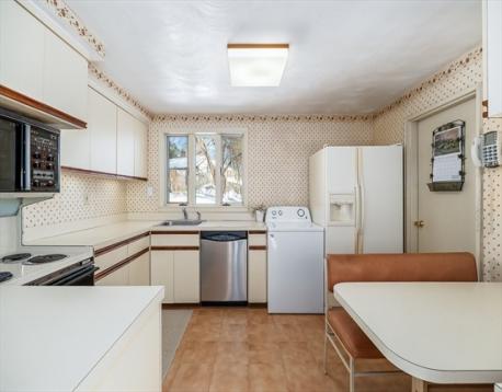 Lovely 3 bedroom 1 ½ bath single level home on private level lot in sought after Jordan Acres neighborhood in West Peabody. Open concept layout, spacious living room with a wall of glass offering incredible natural light overlooking the back yard with wood burning fireplace, dining area and eat in kitchen. Freshly painted. Full bath with tub/shower combination. Primary bedroom includes a half bath for convenience. One car garage with additional storage and plenty of parking.
