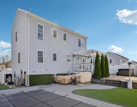 ****TODAY OPEN HOUSE CANCELED -OFFERS to be SEND UNTIL 6 PM TODAY ******.Exquisite 2022 Colonial in Peabody!Beautifully maintained 4-bedroom, 3.5-bath home featuring an attached 2-car garage with a new epoxy floor, extended driveway, and a bright, spacious layout. First floor offers an open kitchen, dining room, living room, and flexible family/playroom. The finished basement includes a bedroom and a full bathroom, providing excellent additional living space.The third floor features hardwood floors installed just 2 years ago, along with customized closets and an upgraded master bathroom.Enjoy exceptional outdoor living with an oversized deck, pergola, barbecue area, stone patio, shed, and a heated saltwater pool with liner finish, all within a fully fenced backyard. Additional upgrade ,a full-yard sprinkler/irrigation system.Inground pool and great paved backyard Move-in ready and loaded with modern comforts—this home is a must-see!