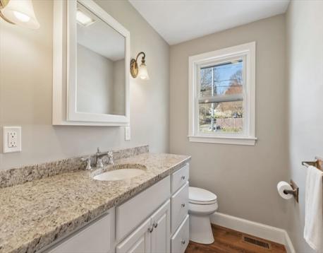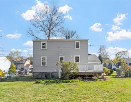 The three keys to real estate - location, location, location - ring true here in this classic Cape, located on a quiet, dead-end street, close to major highways. This neighborhood friendly property has been in the same family for many years and was well loved. The first floor features hardwood floors in the living room, bedroom/office and dining/room or family room. The updated kitchen has stainless steel appliances, granite countertops and an island. A door connects the kitchen to an oversized Trex deck, perfect for entertaining and relaxing. An updated half bathroom rounds out the first level. The second floor consists of two bedrooms with closets and a full bathroom at the top of the stairs. As for systems, a central air system was added in 2019, and there is plenty of electricity to power the home. Other updates include some new siding in 2023. Interior is freshly painted. An attached garage provides more storage.