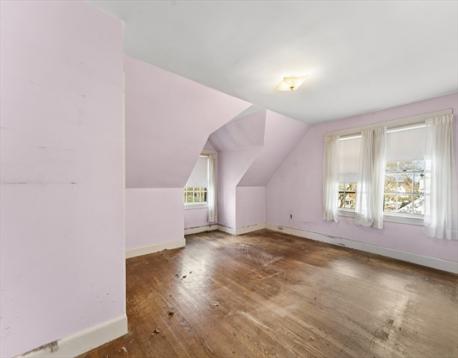 The Perfect Starter Home in a not so perfect market! SOLID THREE BEDROOM CAPE WITH HUGE 9,374 SQ FT BACK YARD ...and even a playground across the way... Make no mistakes, work will be required but the 'big ticket stuff' is in really good shape and cosmetics would make a huge difference here. Take up the rugs and take a peek at the wood floors. TWENTY FIVE FT LIVING ROOM WITH FIREPLACE. Eat in Kitchen with a French Door to seperate dining room...Total of three bedrooms including a 24 ft Primary Bedroom and 1+ baths. Architectural Shingle Roof is approx 10 yrs old...heating system looks good. Needs updating but in overall good condition. Vintage pink tile bathroom for your retro side...LARGE LOT could easily accomodate larger home to grow into later. The YARD IS THE CROWN JEWEL...a BIG beautiful level fenced yard for kids to play... awesome potential for the growing family. Elementary School literally around the corner. Fantastic entry level home that could be really great!!!