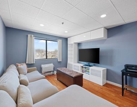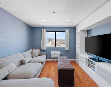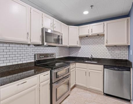 Excellent opportunity to own in a highly convenient Peabody location. This freshly updated and efficiently designed condo offers comfortable living in a well-maintained, professionally managed elevator building with easy access to parking. The unit features a bright interior, city views, and a functional layout ideal for everyday living. The kitchen is a standout with shaker cabinets, stone countertops, a stylish backsplash, and a peninsula with bar seating—perfect for casual dining or entertaining. The living area includes built-in shelving that adds both charm and practical storage. A dedicated bar area with additional cabinetry enhances the space for hosting or relaxing at home. The building offers updated common areas and the benefit of a strong association with a reasonable condo fee. Whether you're looking for a place to call home or a smart investment opportunity, this property delivers great value. Unit will be delivered vacant. A great find in today’s market!