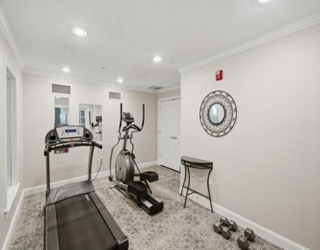 Pristine Penthouse (4th flr.) 2 bedroom / 2 bath open concept has 1,231 sq. ft. of living space in elevator building located at desirable Peabody Crossing is approx. 1/2 mile to Peabody square's dining & shopping area. Unit includes Stainless steel kitchen appliances, Granite counters, new dishwasher & garbage disposal. Kitchen overlooks open concept living to dining room & living room w/ gas fire place. Main bedroom is large & private w/ a custom built walk-in closet leading to en-suite bathroom w/ jacuzzi tub, walk in shower & double sinks. The 2nd bedroom is generously sized w/ large custom built closet system. In-unit washer/dryer off 2nd bath stowed in closet w/ french doors. Electric garage door opener to heated garage parking & your private storage unit. Meeting room off lobby w/ sink & each floor has common fitness equipment room. Nice Gazebo and picnic area on property. Unit measures approx. via floorplans, Buyer/Buyer agent due diligence.OH Sat.10a-1130a & Sun. 12:30p-2:30p.