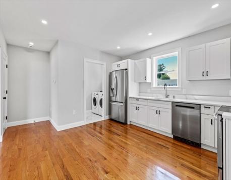New construction townhome in desirable Peabody! This beautiful townhome is situated on a dead end street yet ideally located in close proximity to downtown Peabody. This townhome features 1,680 square feet of living space over 3 levels with 3 bedrooms and 1.5 bathrooms. The main level features a living room, eat-in kitchen with stainless steel appliances and granite counters, a half bathroom with washer/dryer. Upstairs, you will find 2 bedrooms with ample closet space and a full bathroom. The finished lower level includes a mud room and the 3rd bedroom with a large closet. Other features include hardwood floors, central A/C and two off street parking spaces. New construction. Taxes to be determined. No condo fee, owners will split master insurance 50/50.