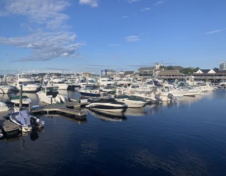 The Atlantic at Marina Bay. Rarely available 2-bedroom, 2-bath residence in sought-after waterfront community, with a spacious open-concept layout and new hardwood flooring. Abundant natural light throughout. The updated kitchen has stainless steel appliances, quartz countertops, and a glass tile backsplash and flows into the dining area and sunlit living room. Step out to a private balcony to enjoy coffee at sunrise. Both generously sized bedrooms offer walk-in closets and custom wall detailing. A new tankless gas hot water heater and in-unit stackable washer/dryer complete the home. Resort-style amenities: a swimming pool, grilling area, fitness center, and fenced dog park. Deeded parking plus ample guest spaces. Pet-friendly. Effortless commuting, with a free weekday MBTA shuttle to the Red Line and newly added Marina Bay ferry with direct access to Boston. Just steps to Marina Bay boardwalk, with restaurants, shops, a brewery, market, and nightlife. Close to 93. Welcome home!
