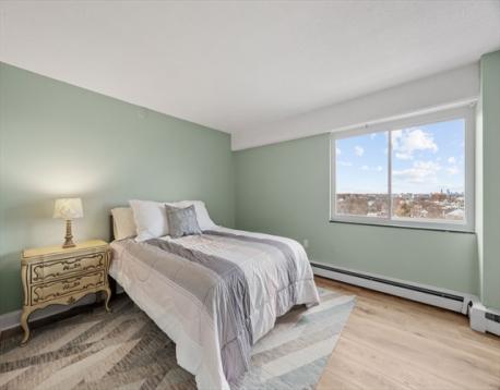 Enjoy sweeping views from the 11th floor, including city sights and glimpses of the bay and harbor. This home features all-new vinyl flooring, reglazed tub, new windows throughout, and two newer (2 yrs old) wall AC units. Spacious bedrooms also capture the skyline, and the open living/dining area flows to your covered balcony — perfect for morning coffee or an evening glass of wine. Includes an assigned covered parking spot and a storage area. The professionally managed building offers elevator access, on-site laundry, and secure entry. Ideally situated in a vibrant, walkable neighborhood with restaurants, cafés, shops, parks and community events just minutes away, plus walkable access to the MBTA Red Line and commuter rail. Easy highway access makes commuting into Boston or getting to South Shore beaches a breeze.