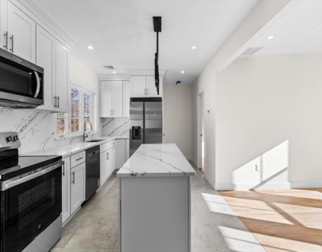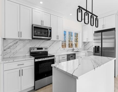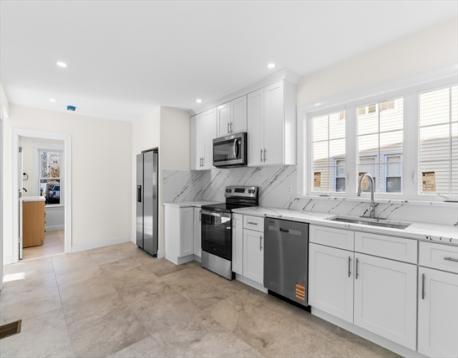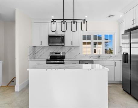 A rare opportunity to live just steps from Mound Street Beach, enjoy scenic water views and outdoor activities in nearby park, adjacent to the Town River Bay, all in the desirable Quincy Point Neighborhood. Virtually renovated inside and out, this well-appointed two-family home combines modern design with worry-free ownership. Brand-new vinyl siding provides durability and low maintenance for years to come. Inside, both units feature quartz kitchens, new energy efficient windows, stainless steel appliances, new hardwood flooring, and designer bathrooms. Additional highlights include separate utilities, private entrances, new heating and cooling systems, In-unit laundry, new and reconditioned layouts, bright and sun-filled in every room. Unit 1 features enclosed front porch, 2 bedrooms and 1 bath. Unit 2 boasts an open floor plan, 2 bedrooms and 1 bath, private deck and sunroom. Comes with tandem parking for 4-6 cars on driveway. No flood insurance required. What more do you need?