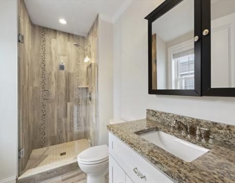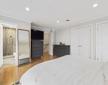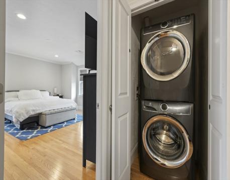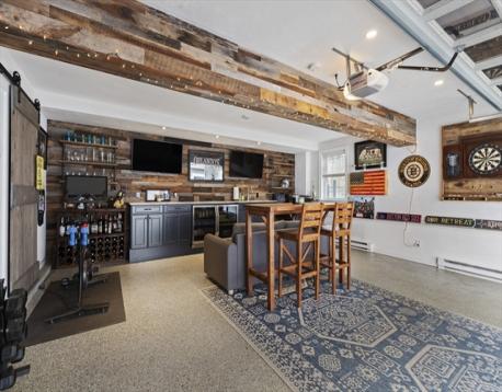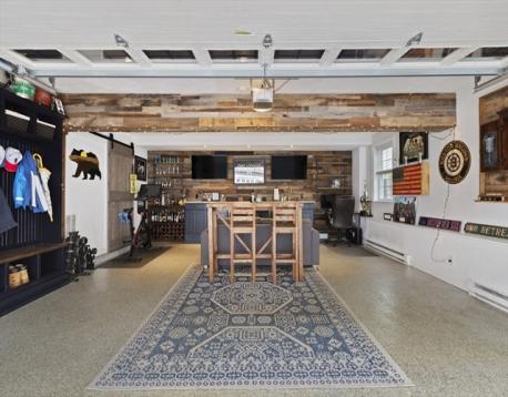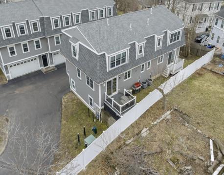 Welcome to effortless living in bustling Quincy Center. This beautifully maintained end unit townhouse offers two generous sized bedrooms and 2.5 baths, filled with natural light and modern finishes. Hardwood floors run throughout the functional layout, leading to an inviting main living space complimented by custom millwork and wainscotting. The primary bedroom features his and hers closets, a walk in glass shower and direct access to in unit laundry. The standout feature is the upgraded garage, transformed by a custom setup with a large counter, fridges, tv's and even a sink. Intended to still be fully functional for vehicle parking, the space easily converts back. Additional attic space provides valuable storage flexibility. Pets are welcome! Spread out and enjoy your private deck without giving up the benefits of condo living. Just steps from Quincy Center’s vibrant dining, shopping, and red line access.