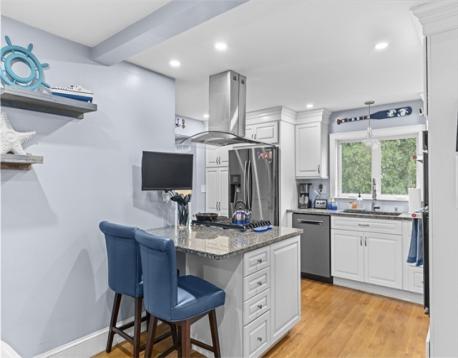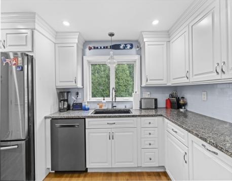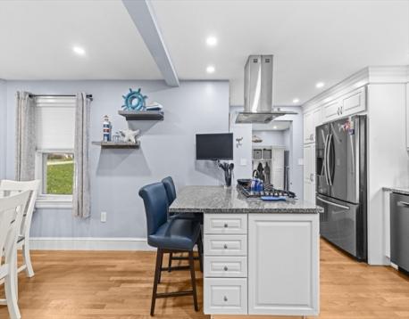 Have you been wanting to live in Squantum? Well here is your chance. This is a well maintained ready to move into Cape. It has 3 Bedrooms, 1 Full Bath with a 1 car garage that can be used for extra storage and real close to public transportation. As you walk into the mudroom and take off your jacket you get a great look at your beautifully renovated kitchen with a gas stove, granite countertops and wall oven. The rest of the first floor has a dining area, living room with gas fireplace, bedroom all with hardwood floors and a bathroom. The second floor features 3 rooms, 1 bedroom to the right of the stairs and to the left of the stairs it has a multi use room that leads to another bedroom. With to many updates to be listed here but attached to the listing and a private fenced in back yard this is the perfect place for anyone to call home.