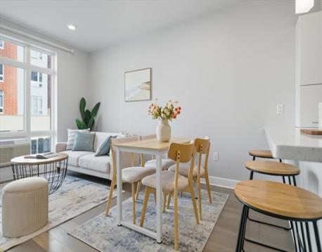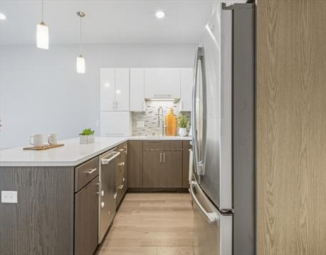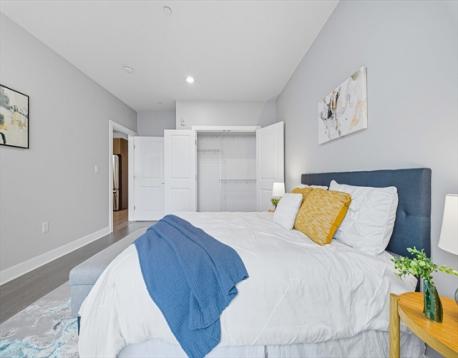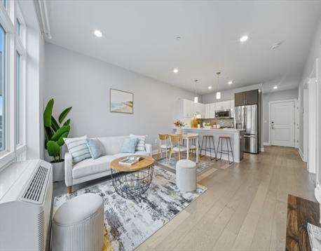 Welcome to the 2017-built Cliveden Place Condominiums in Quincy Center! Enjoy the best city commute steps from the MBTA station, easy access to I-93, Wollaston Beach, Marina Bay, Blue Hills, best restaurants and shops in the area! This sunny open concept and beautifully well-maintained 2 beds/2 baths unit offers the perfect balance of luxury design and modern functionality, featuring an open kitchen w/ gas cooking, quartz countertops, peninsula dining and stainless-steel appliances. The high ceilings, sleek Kährs wood flooring and expansive windows invite tons of natural sunlight into the home. The spacious primary suite has a large walk-in closet, as well as a private ensuite bath with radiant floor heat. A second bedroom also is generously sized. Another guest bathroom and in-unit laundry complete the unit. Each room has its own heating/cooling unit superior in energy efficiency. 1 deeded parking is included. Professionally managed, this building is friendly w/ pets under 30 pounds.