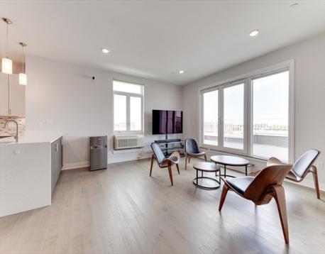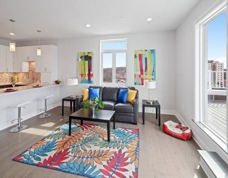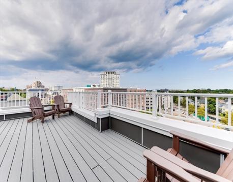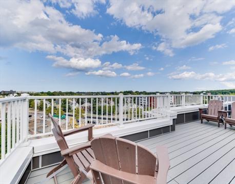 Rare front-facing end-unit PENTHOUSE with large private roof terrace and 1 garage parking spot. Located at 2 Cliveden St (off of Hancock St), a rare offering in this sought after building of recent construction (2018). This spacious home features a gourmet kitchen with premium finishes, three large bedrooms, including a luxurious master suite, and a sun-filled open layout. This corner unit is flooded with natural light. Exquisitely appointed and designed with an open-concept plan, the space is complimented with high ceilings and floor to ceiling windows. The kitchen has a sophisticated contemporary look with top of the line stainless appliances, waterfall quartz counter tops and two toned cabinetry. Step outside to your expansive private deck and enjoy sweeping views of Quincy. Perfectly located just steps from the Quincy Center T station, vibrant restaurants, and shops. This residence combines modern elegance with unbeatable convenience.