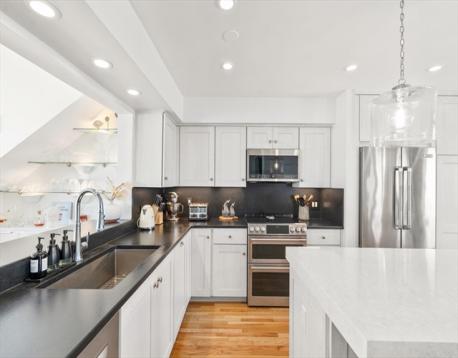 Located in vibrant Marina Bay convenient access to Boston this exceptional waterfront townhouse offers refined coastal living with breathtaking water views and sophisticated modern finishes throughout. Featuring three bedrooms and three beautifully renovated bathrooms including a spa like primary suite with soaking tub and custom shower this home blends style and comfort seamlessly. The chefs kitchen offers custom cabinetry a large island with quartz countertops and high end stainless steel appliances open to dining and living areas ideal for everyday living and entertaining. Glass and Chrome finish railings hardwood floors designer details custom closets and ample storage enhance the home. Enjoy private balconies deck garage parking seasonal pool gym ferry to Boston marina shops and restaurants truly waterfront living at its finest.