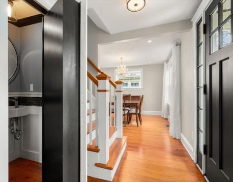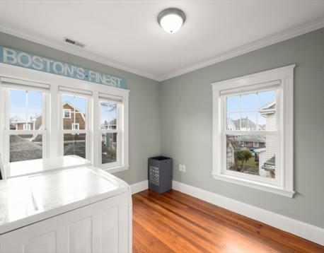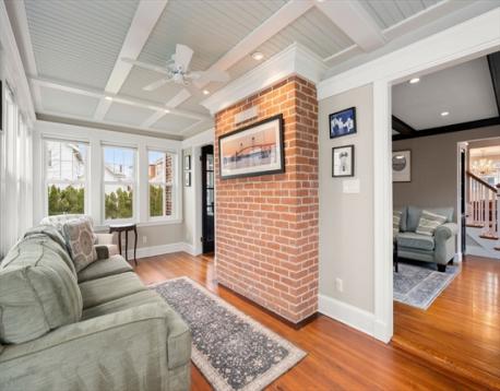 Stately brick Colonial with timeless curb appeal in one of North Quincy’s most desirable locations—just moments to the beach and Quincy Shore Drive with easy access into the city. This home offers tall ceilings, beautiful hardwood floors, central A/C, and gas heat, along with a classic layout featuring a fireplaced living room with coffered ceiling, sun-filled sunroom, formal dining room, and kitchen. The second level includes three spacious bedrooms plus a bonus room, currently used as laundry, with flexibility for a fourth bedroom or office. The finished lower level includes a full bath, offering additional living space. A private backyard and oversized garage offer plenty of space for parking, storage, and tools.