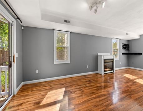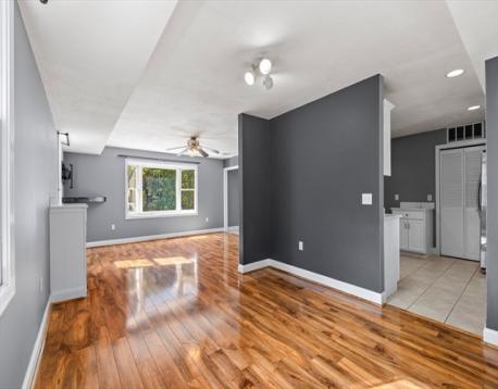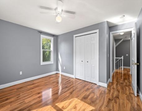 Mint condition, sun-filled townhome at the top of Greystone Street! This spacious unit features hardwood floors, thermal pane windows, and a cozy fireplace. The updated kitchen offers stainless steel appliances, stone countertops, and opens to the dining room with sliders leading to a private deck and patio—perfect for entertaining. A full bath and in-unit laundry complete the first floor. The primary bedroom includes a walk-in closet and en suite bath. The versatile third floor makes a great extra bedroom, home office, or playroom. Quiet cul-de-sac location with lovely grounds, ample parking, and walking distance to Quincy Adams T Station. Easy access to highways—move right in!