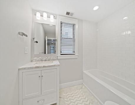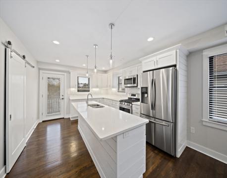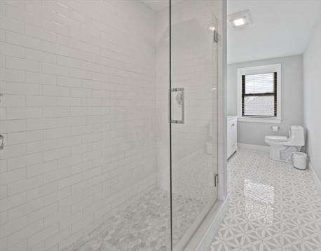 Two level luxury condo just minutes to the beach, Marina Bay and Boston commuting! This penthouse condo occupies the full second and third floors and was gutted to the studs in 2019 feels just like new! Private entrance allows for mudroom storage and access to your covered front porch. The main floor has an open layout with hardwood floors and recessed lights. The chef's kitchen has an impressive 9 foot quartz center island, tons of custom cabinets and all stainless appliances are included -plus access to your private back deck. A barn door conceals the stackable washer/dryer. This level also has a full bath and two good size bedrooms. The top floor has the main bedroom with a custom walk in closet, second storage closet and tiled bathroom with double vanity. Heating system/hot water on demand, AC and roof are 2019. One garage parking spot, two off-street spots, basement storage and nice back yard. Low condo fee of $289/month (with great reserves), one dog up to 40 lbs allowed