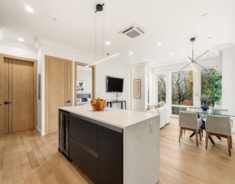 A new standard of sophistication, defined by a unique vision and exceptional execution, Amber Residences has been designed to stand out. Plush landscaping surrounds the building. The brick exterior, enhanced with sound baffling insulation, boosts efficiency. Inside, a striking lobby of refined finishes and dramatic lighting sets the stage. Each residence features custom German-imported kitchens from SieMatic and LG stainless appliances. Living rooms extend seamlessly to private decks, while expansive Drutex windows bathe the space in sunlight. Bathrooms are fully tiled with floating vanities, concealed storage, and primary showers accented by large niches and linear lighting. Radiant floor heating in primary baths. Every detail—elevated doors, artful hardware and fixtures, wine cooler, whole-unit Wi-Fi—has been intentionally crafted. Smart entry uses facial and license-plate recognition. Amenities include basement storage, a dog-wash station, EV charging, & two parking spaces included.