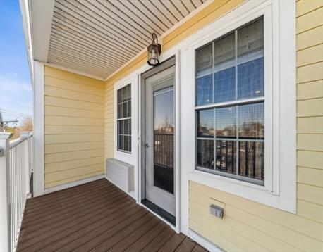 Welcome to this bright east-facing penthouse, where morning sunlight fills an open and inviting floor plan just moments from the North Quincy T. The designer kitchen features granite countertops, Schrock cabinetry, and GE Adora stainless-steel appliances including a five-burner gas range, opening to a generous living area with space for dining and access to an oversized private, covered balcony—perfect for enjoying sunrise views. The entry offers space to create a mudroom drop zone, leading into a hall with in-unit laundry, ample storage, and full bath. The primary suite includes a large walk-in closet and en-suite full bath, complemented by a spacious second bedroom with a large closet. Details include crown molding, Kahrs hardwood floors throughout, electronic key pad entry, and efficient three-zone heating/cooling. Excellent commuter location with elevator, 1 deeded/assigned parking, and close proximity to highways, MBTA, shops, Stop & Shop, restaurants, and Wollaston Beach.