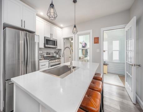 Situated at 452-454 Quarry Street, this attractive multi-family property presents itself in great condition, offering a distinctive opportunity within a residential area. This impressive structure, spans three stories and offers a substantial 2628 square feet of living area on a generous 9150 square foot lot. The heart of culinary creativity awaits in the spacious kitchen, featuring a practical kitchen bar and a generously sized kitchen island, both adorned with durable stone countertops. Thoughtfully designed shaker cabinets provide ample storage, complemented by a dedicated wine cooler, all centered around a welcoming kitchen peninsula, making it an ideal space for preparing and enjoying meals. Both units have separate washer and dryer,2 detached garage plenty of parking. Close to expressway, park, restaurants and shopping.