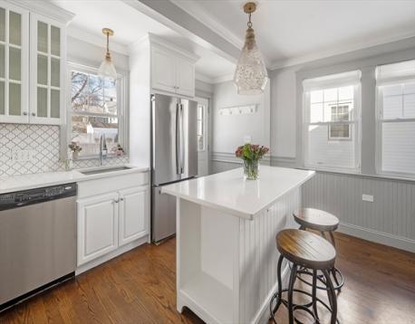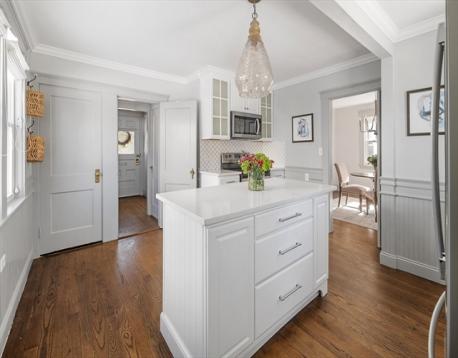 Perfectly blending modern updates and classic charm this move-in ready home combines comfort and convenience. The remodeled kitchen features a modern design with a center island, and upgraded cabinetry and appliances, creating an ideal space for cooking and entertaining. The first floor features a formal dining room, living room with fireplace, and a sun filled den— ideal for a home office or reading nook. Upstairs you'll find three formal bedrooms a fully renovated bathroom with tub, and a versatile bonus room. Enjoy year-round comfort with recently added central air and heat plus ceiling fans and hardwood floors throughout. Outside, take advantage of the spacious yard and patio—perfect for relaxing, gardening, and hosting. Ideally located in Quincy, just minutes from Boston via nearby highways and MBTA transit. Walkable to East Milton Square with shopping, dining, parks, and local amenities. This home delivers both lifestyle and location in one inviting package.