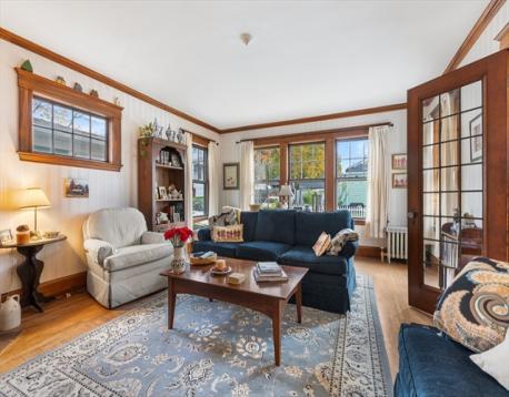 Steps from the beach and moments from the conveniences of North Quincy, this adorable Gambrel is now available. This home has been impeccably maintained over the years with lots of original charm including leaded glass doors, glass door knobs and original wood work. Cozy up this holiday season in front of your fireplace, and in the warmer months enjoy entertaining on the patio out back. Located just a half mile from North Quincy T Station and a quarter mile to the beach, this house is tucked into a quaint side street. This home features three bedrooms upstairs, one is best used as a nursery or office.
