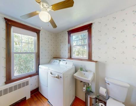 Discover a rare gem in one of West Quincy's most desirable neighborhoods close to the serene Cunningham Park area with easy access to East Milton and major highways. This charming Cape offers oak floors throughout, a spacious eat-in kitchen and a bright living room perfect for gatherings. The flexible 1st floor primary suite/bonus room features a full bath plus a convenient laundry with a 1/2 bath. Upstairs two generous bedrooms share a 1/2 bath with extra space for a potential third bedroom and additional bath. Enjoy the inviting, heated enclosed porch, a partially fenced yard and parking for three cars. There are insulated windows and a newer roof. The large lower level-with a bathroom and shower-provides exceptional storage or finishing potential. Don't miss this opportunity! Visit our Open House on Saturday 10/11from 11:30 to 1:00 and picture yourself at home in this coveted Quincy location.