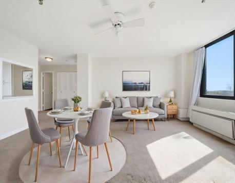 Rarely available upper floor end unit with view of Quincy Center. This spectacular location offers residents the ability to walk to the Redline, Starbucks, Planet Fitness & a variety of bars, restaurants & cafes. Amenities include a roof top outdoor swimming pool, a community room that can be rented out for parties. (which offers an amazing view of Boston's 4th of July fireworks each year), & 1 parking spot. Recent updates include a brand new heat pump installed in 2024. The condo has been professionally cleaned, freshly painted & is in turn key move in ready condition. Open houses Sat 5/2 from 11:00 -1:00 & Sun 5/3 from 11:00-1:00. Offers due Mon 5/4 at 5:00 pm