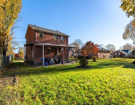 This stately brick Colonial has been lovingly cared for by the same family since it was built over 60 years ago. Beautifully positioned on a spacious, level lot with partial fencing and a covered patio area this home offers timeless charm and comfort. The first floor features a welcoming living room with a cozy fireplace, a versatile den or office, and an inviting eat-in kitchen. Hardwood floors lie beneath the wall-to-wall carpeting in the living room, den, and stairway. Additional highlights include two-zone central air conditioning and a brand-new roof installed in 2023. Converted to gas heat in 2013. The blown in insulation is another nice advantage. Ample off-street parking, nearby beaches and a bus stop at the top of the street to get to nearby Quincy center "T", restaurants and stores all add to the appeal of this well-maintained home. Pride of ownership is evident throughout. The unfinished basement with 1/4 bath may have potential to finish an area for extra living space.