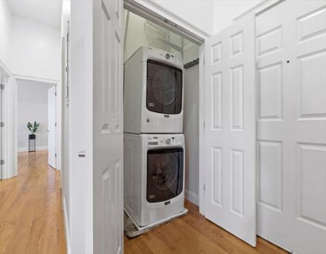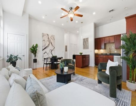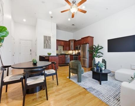 Stunning 2 Bed 2 Bath unit in Professionally Managed Elevator building by Quincy Center. Enjoy the sun drenched open concept living room, kitchen & dining area w. high ceilings & oversized windows. Dazzling kitchen w. granite countertops featuring stainless steel appliances & gas cooking. Expansive king sized primary bedroom w. all the space for your furniture, which flows beautifully into an updated en suite bathroom w. standing shower. The primary bedroom also hosts a walk-in closet. The sizable second bedroom has double closets. Forget about fighting for parking, this unit comes w. 2 Private Parking Spaces, including 1 Garage (Labeled #3) & 1 outdoor parking space (Labeled #23) & multiple outdoor visitor parking spots. Addt’l things to love incl. in-unit Laundry, Central A/C & Gas Heat. Close proximity to public transportation: 0.6 Miles to Quincy Adams Station & 0.8 Miles to Quincy Center Station, both on the Red Line. Stones throw from Restaurants, shows & other local favorites.