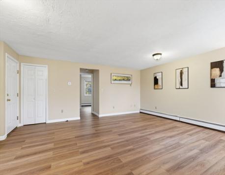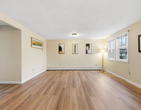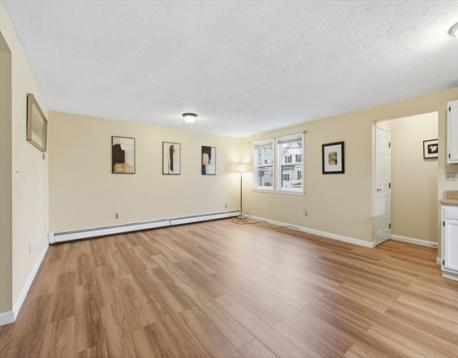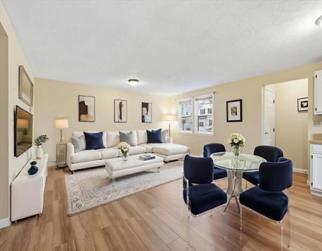Your Search Ends Today! Discover this rarely available 3-bedroom condo in the heart of town, just minutes to the T and highway. Enjoy an open floor plan with spacious rooms, abundant natural light, gas cooking and heating, 1.5 baths, and in-building laundry. This home also offers the rare bonus of two parking spaces plus generous closets and storage. Perfect for those who want the space of a single-family home without the hassle of yard work—come make this your dream home today!