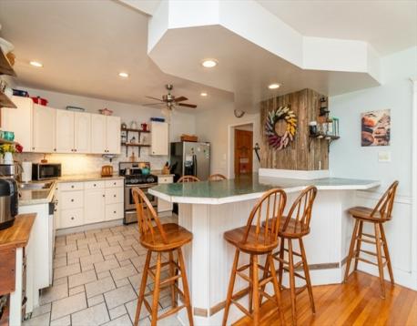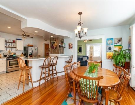 This spacious sun-filled home embodies a life well lived & loved blending intimate spaces with flexible open concept areas. The kitchen/dining share the living room plus an office & playroom as bookends. Enjoy cooking in the vibrant kitchen that welcomes lots of helping hands at the oversized island with stools. Closets grace the upper hallway leading to a 3BD configuration. Relax in the tiled shower & deep soak tub with a double vanity beneath a vaulted ceiling. A dedicated fitness room, workshop, laundry, storage & garage add utility to this gracious offering. The walkout patio & expansive fenced yard is ideal for gardening, pet play or entertaining. Enjoy abundant aquatic recreation on the sought after Hough’s Neck peninsula boasting stunning sunrises & epic sunsets with year-round community events. Walk to the elementary school, playgrounds & beaches with T service at your door. Don’t miss this home ownership opportunity less than 10 miles from downtown Boston by car, MBTA or ferry