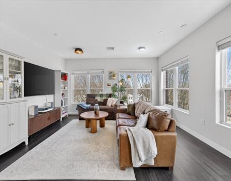 Welcome to the Residences at Brookside. A luxury Condominium building ideally situated steps from Quincy Center. This sun-filled two-bedroom two-bathroom corner unit has amazing natural light with two exterior walls of windows overlooking Furnace Brook. This modern layout offers a great entertaining space with dark-stained engineered oak floors, stainless steel appliances and stone counters. Spacious master suite with custom designed walk-in closet and finely appointed bath. Building amenities include a full gym, yoga studio, club room, common courtyard with grilling area and an expansive roof deck with city and ocean views. This Residence comes with two-deeded garage parking spaces!