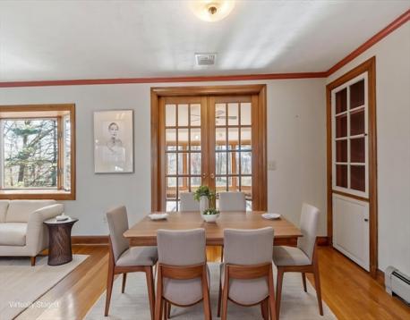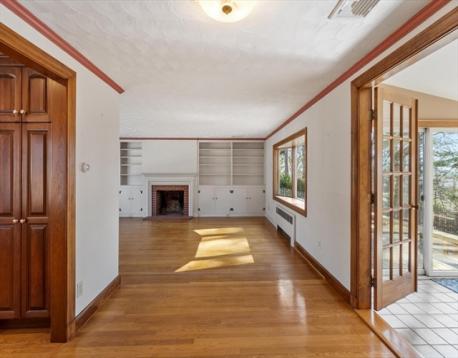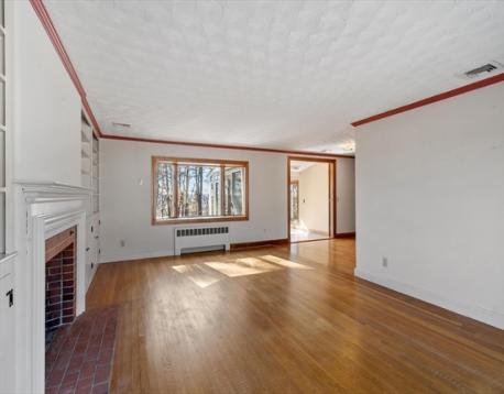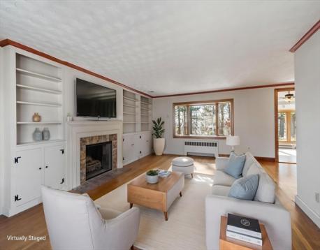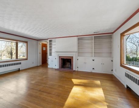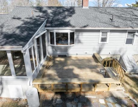Ideally setback on a Rise overlooking a coveted West side neighborhood, this Custom Expanded Ranch features a hard to find Over-Size Main Bedroom & Open concept living area for entertaining. The living room is filled with natural light ~ Large picture windows front & back, wood burning fireplace & built-ins. Charming china cabinet in dining rm as well as French doors to the Window Packed Sun Room with vaulted ceiling. Relax & take in the Gorgeous established gardens on the private half acre+ lot. Updated kitchen ~ granite countertops, stainless steel appliances & pantry – Many major improvements, include Central Air, Andersen windows, Boiler, Oil Tank, Garage door & recent 2023 updates ~ new Architectural roof & exterior paint job, scraped & painted. PLUS ~ hardwood floors thruout, wide trim detail, crown moldings & attached garage. Located near Barrows Elementary, shopping & downtown Reading & easy access to routes 93&95 & Anderson Commuter Rail. Feature sheet lists more detail