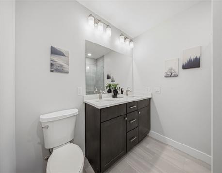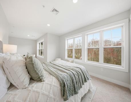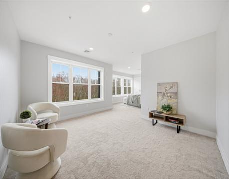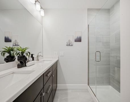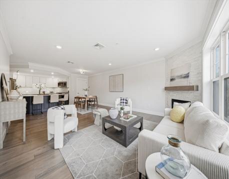 Built in 2022, this penthouse residence offers modern single-level living with a bright open layout and east-facing exposure. The living room features a gas fireplace with a stone surround and a floating mantle. The kitchen is ideal for everyday living and entertaining with an oversized island, quartz countertops, quality cabinetry, GE stainless steel appliances, under-cabinet lighting, and gas cooking. The oversized primary bedroom includes a walk-in closet and an en-suite bath with a glass-enclosed shower and a double vanity. Additional highlights include a private balcony, heated garage parking, central A/C, in-unit laundry, and excellent storage throughout, plus additional basement storage. Pet-friendly community with on-site EV charging and a walking trail directly behind the building. Convenient location near Routes 95 & 93, with easy access to shopping, dining, and nearby amenities.