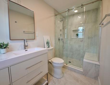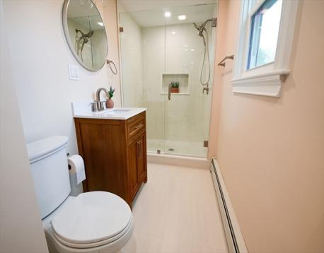 This fabulous Split Entry Single Family sits on an expansive 1/2 acres flat land in one of Reading's most desirable neighborhoods. Fully renovated with new: kitchen, baths, electricals, plumbing, 2 zones gas boiler and 3 zones Heat Pump, windows, siding, deck and much more. Featuring 2 levels of sun-filled space, comfort living area, a yard with large rear deck, ample space for gardening & enjoyment. The main level features an open floor plan, refinished hardwood floors, a chef’s kitchen with quartz countertops, high end appliances with peninsula for casual dining, access to the new deck, perfect for indoor/outdoor entertaining, cozy fireplace, primary suite with spa-like full bath, plus 2 additional beds and a full bath. The exceptional lower level, completely above the grade offers a family room w/ fireplace 1 bedroom w/ a full bath, laundry room, access to the oversized 2-car garage and storage, ideal for guests or multi-gen living. Don't miss the chance to make this home yours!