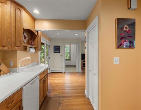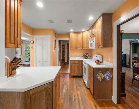 Spacious 5-bedroom, 1.5-bath home filled with early 1900s character and timeless details. Hardwood floors run throughout, complemented by gorgeous woodwork, archways, and a fireplaced living room. Enjoy the screened porch for private summer relaxation. Gorgeous lot in an amazing location—just moments to downtown, the commuter rail, all three schools, and local conveniences. Gas heat and potential to expand in the basement add modern comfort and future opportunity. With its charm, space, and setting, this home is a rare find.