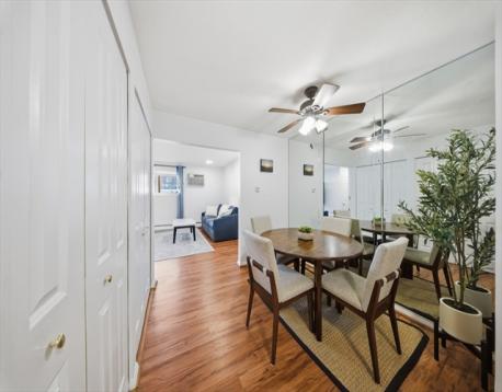 Experience commuter-friendly living at sought-after Briarwood Estates! Located just 0.2 miles from the Reading Commuter Rail Station, this home offers convenient access to Boston and surrounding areas. The updated kitchen features freshly painted cabinetry, new quartz countertops, and opens to the dining area after removal of a non-load-bearing wall, creating a bright, open layout ideal for entertaining. Recent updates include freshly painted walls, trim, doors, and closets (inside and out), recessed lighting in the living room, and a brand-new Bath Fitter tub. The spacious primary bedroom offers flexibility for a home office, with ample closet space throughout. Enjoy a Walk Score of 83 near shops, restaurants, Parker Tavern, and Reading Town Common. This professionally managed, pet-friendly community includes an in-ground pool, deeded parking, and low-maintenance living.