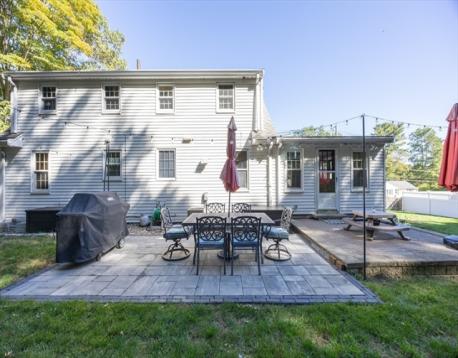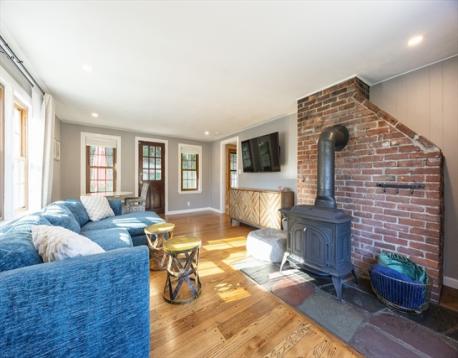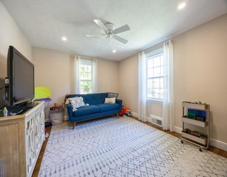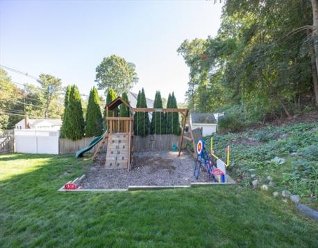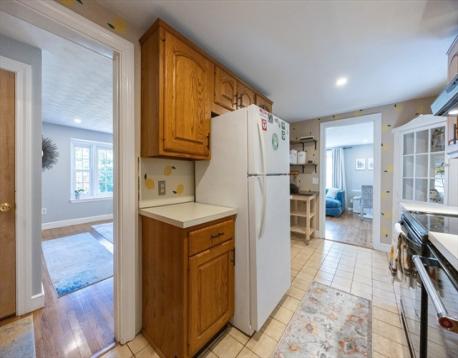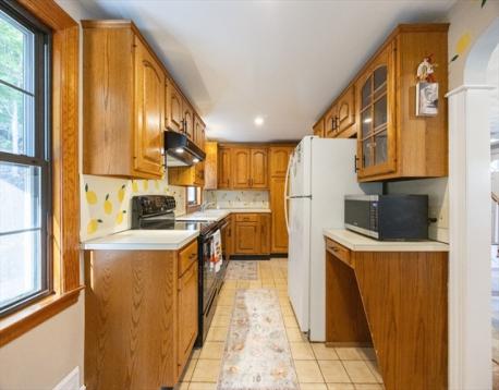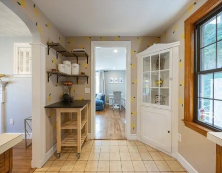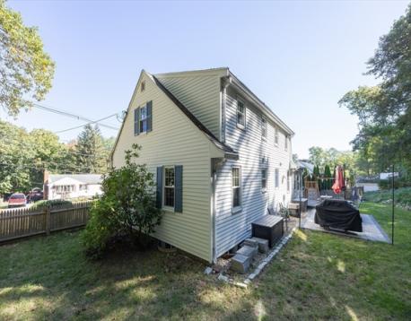 Lovely Cape in the Joshua Eaton school area. This home offers a flexible 1st floor layout. Lots of storage in the kitchen, bright dining room with fireplace, spacious living room w/bow window & access to the back yard, a main bath with tub & shower & a linen closet, a large 1st flr. bedroom is used as a guest/playroom & there is a great home office. There is a closet in the main hall. The 2nd floor offers a primary bedroom with a large closet, storage space & built-ins, a 1/2 bath, and a linen closet. Another spacious bedroom with built-ins. The basement has the potential to be finished, it has been used as an exercise space & is great for storage. It has a laundry area with a laundry sink & garage access. This lot offers wonderful privacy and entertaining space, two patios, garden space, and a grass game area. Great commuter location for all highways & the commuter rail. AHS Home Warranty is included for the buyer's peace of mind.