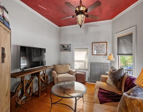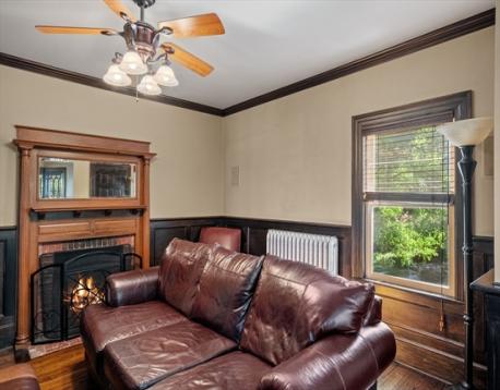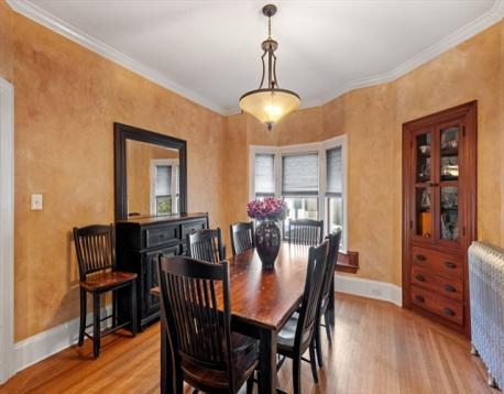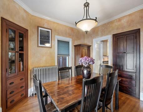 Welcome to this charming single-family Colonial/Antique home in Reading, Massachusetts! As you step through the front door of the historical Charles A. Damon House from the farmer's porch, you'll be greeted by an impressive entryway. This home boasts 10-foot ceilings, crown moldings, built-in cabinets in the dining room, and hardwood floors throughout the first floor. Upstairs 3 of the 4 bedrooms have wall to wall carpet and one of the bedrooms has hardwood floors and a fireplace.. This beautiful residence offers seven rooms, four bedrooms, and two full bathrooms, spanning just under 1,800 square feet of living space. Both bathrooms feature tiled showers, and the kitchen is nicely updated and all appliances are to convey with the sale. Conveniently located close to major highways and the commuter rail, this home perfectly blends classic elegance with modern convenience. Showings begin on Thursday, October 2nd! This home is the one you have been waiting for! Do not wait to take a look