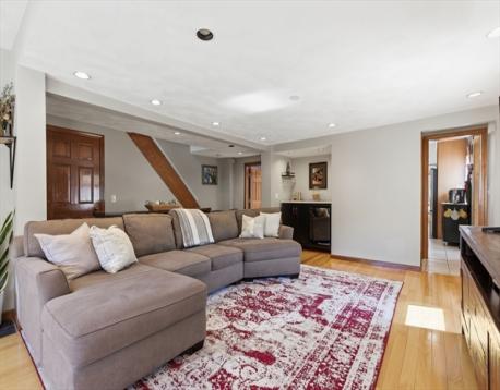 Rare opportunity to own a townhouse that truly lives like a single-family offering the space, privacy, & lifestyle you deserve. Step outside to your own semi-fenced, sun-filled yard, perfect for gardening, entertaining, & spending time with loved ones. A sprawling deck sets the scene for morning coffee, summer grilling & lazy afternoons soaking up the sun. Inside, you’ll find a bright & airy EIK with cathedral ceiling & abundant cabinetry plus a spacious living room with HWF & beverage nook. Renovated BA, 2nd fl laundry, & spacious bedrooms with double closets offer both comfort & convenience. Need storage? The oversized basement has you covered. With parking for 6, walkability to downtown Reading & easy access to the commuter rail + Bagel World (local fav), this home delivers both lifestyle & location. 1st time buyers, this is your chance to stop paying rent & start building equity. Move-in ready, full of charm & an incredible value in one of Boston North’s most desirable communities.