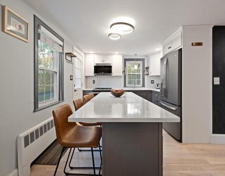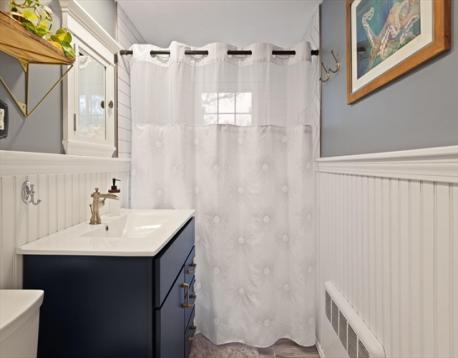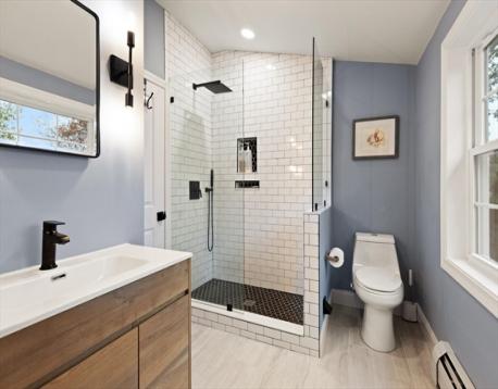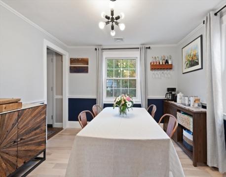Nestled among the trees, set back on a generous 40K sq/ft lot with spectacular views awaits this Picture-Perfect Cape that is move-in ready & offers 3 Bedrooms & 3 Bathrooms. Beautifully renovated Kitchen/Dining room combination features Hickory hardwood floors, fine cabinetry, an over-sized island & SS appliances. A charming & inviting Living Room features a wood burning fireplace, an oversized bay window & original red oak hardwood floors. The 2nd Floor features a new dormer adding a Full Bath, Bonus room & expanding the size of the Primary Bedroom boasting oversized windows to enjoy the views! A nicely finished lower level adds a Family Room for extra living space, full Bath, laundry, built-in cabinets & storage. A large wrap around Deck overlooks an amazing Backyard that hosts an oversized, powered & insulated Shed & Hot Tub. Roof, heating system, a/c heat pump & windows are all recently updated. Easy access to I-95, Wakefield Lake & just steps to the Bare Meadow walking trail.