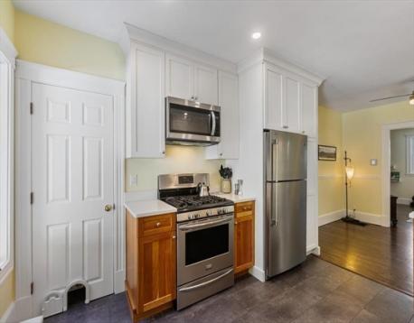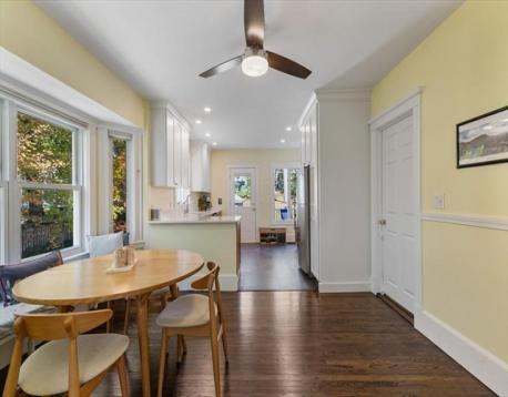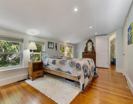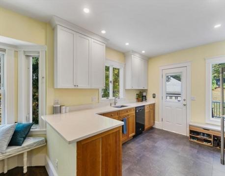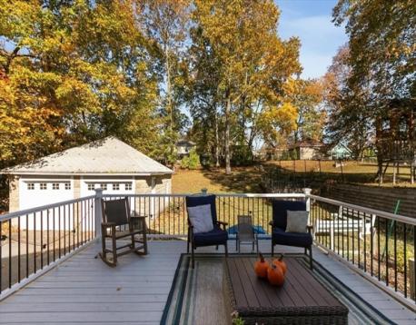 Your patience has paid off! This sunny, updated home checks all the boxes! Open. flexible floor plan with first floor primary bedroom. Custom kitchen is 3 years old with quartz countertops and stainless appliances that will make holiday entertaining a breeze! Enjoy hardwood floors on both levels, vintage moldings and beautiful views from large windows. Step out the front or the back to enjoy coffee on the covered porch or rear oversized deck (16x16!). The home is well insulated and the high efficiency HVAC (3years) with on-demand water heater provide trouble free heating and cooling. The full basement offers plenty of additional storage with room for hobbies or working out. Reading is well known for its high quality schools, library, seasonal downtown festivals, trails and commuter rail. A new senior/community center under construction and you'll love the two car garage AND a spacious yard with fire pit and raised beds. Very popular neighborhood! Showings start Sunday, 10/26
