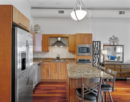 Welcome to Surfside Lofts—an oceanfront residence blending modern luxury w/Manhattan-inspired design. This meticulously maintained front-facing unit offers spectacular Atlantic Ocean views through floor-to-ceiling Pella windows, enhanced by soaring 11-ft ceilings that fill the unit w/natural light. The custom kitchen features a chef’s cooktop, SS appliances, granite countertops, sleek cabinetry, & an oversized island w/seating for 4. The open concept living area showcases Brazilian Cherry hdwd floors & provides a provides a flexible layout to suit any lifestyle. Additional highlights include a Zolli bathroom vanity w/Kohler fixtures, in-unit stackable washer & dryer, generous storage, & off-street parking. The building offers extra storage & a TV-monitored security system for added peace of mind. Located just minutes from Beachmont & Revere Beach Stations, Logan Airport, shopping, dining, & historic Revere Beach—America’s first public beach. This exceptional unit is truly a must-see!