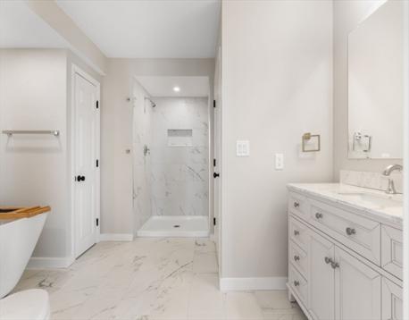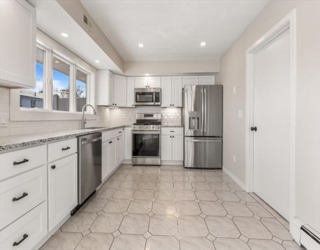Welcome to 119 Marshall St- Renovated Townhouse in West Revere-1st Floor features- Livingroom with Hardwood Floor and Fireplace- New Kitchen Cabinets, Counter Top and Stainless Steel Appliances-Dining Room with Sliders to a Deck-Half Bath with Washer and Dryer- 2nd Floor features Master Bedroom with 2 Walk-In Closets and Hardwood Floors- Huge Bathroom with Soaker Tub and Walk In Shower-2 Bedrooms with Hardwood Floors and Plenty of Closet Space- Basement Features a Full Bath-Family Room-4th Bedroom- Office with Slider to a Patio- 200 amp Electric Service- Central Air-
