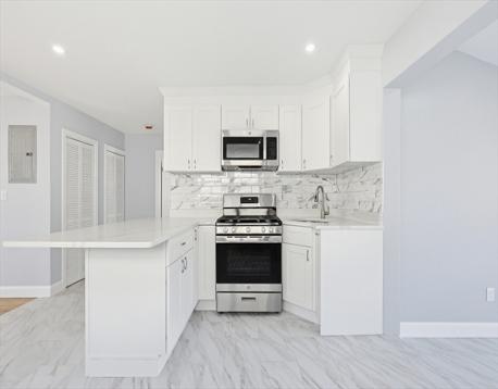 New to the Market! Come check out this Renovated legal 2 Family Home located on a quiet side street with Boston skyline views in Revere, MA. This property is ideal for owner occupant or savvy investor.. Unit 1 features an open layout with brand new kitchen with stainless appliances, living room, brand new bathroom with 2 bedrooms. Unit 2 offers 4 bedrooms, open layout including living room, dining room, and brand new kitchen, 2 full new bathrooms and private deck.Washer/Dryer hook up in one of the bathrooms. Property offers private entrance and separate driveway ideal for extended family or rental income.Additional features include a spacious backyard, perfect for outdoor entertaining or gardening.Brand new heating systems. Separate utilities. New electrical system. Unit 1 is completely brand new.Open House Saturday 4/11 and Sunday 4/12 from 12:30-2:30pm