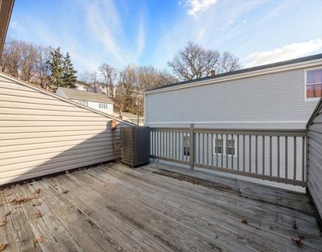 This lovely townhouse-style condominium boasts 1,231 sq ft with an abundance of natural sunlight, two spacious bedrooms, two full baths and multiple levels of flexible living space. The main living area includes a nice kitchen with stainless steel appliances and an open concept to the living room with a sliding glass door that opens to a private deck, creating an easy indoor-outdoor flow. On the second level, you’ll find a versatile bonus room perfect for a home office, study, or additional living space, along with a full bath and the second bedroom. The top-floor main suite stands out with vaulted ceilings, a skylight, a private deck, & a en-suite bathroom. Additional features central air-conditioning, garbage disposal, in-unit washer & dryer, and video surveillance around the property for added security. The complex is pet-friendly and offers one deeded parking space. Located minutes from Route 1 & Route 16, with convenient access into Boston, this home checks all the boxes.