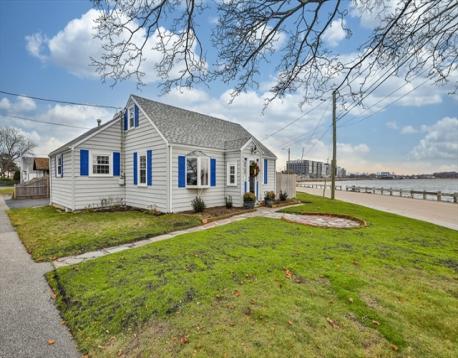 WATER VIEWS from most every window of this storybook, waterfront Cape! Beautifully set on a corner-lot in this desirable neighborhood, it's the perfect spot to enjoy the gorgeous sunsets all year long. It features a spacious Kitchen loaded w/custom Schrock cabinets, that is wide open to the Dining Room w/picture window overlooking the fenced in backyard. There's a lovely Living Room w/ big bay window to capture the water views & the Primary Bedroom, Office & Full Bath beautifully complete the 1st floor. Upstairs offers 2 more Large Bedrooms w/nice closets, including one possibly big enough for 2nd Bath. The manicured lot includes new seeding of the front lawn & totally fenced backyard, w/patio & new composite deck (2 yrs). Add'l amenities include New Cedar Impression vinyl siding, Roof, Gutters, front & back Storm doors (all 7.5 yrs), thermal windows & young Gas Heat (7 yrs). GREAT location near the beach, with bus at corner & Blue Line nearby for easy commute to Boston & beyond!