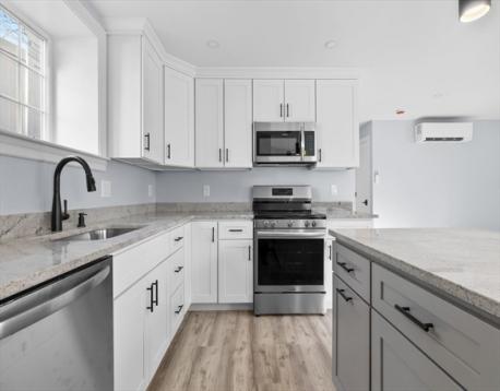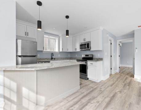 Welcome to 35 Liberty Ave, beautifully crafted new construction home w/LEGAL-income generating ADU, blending style, comfort, & functionality. Step into a charming wainscoted vestibule. Head up to main level adourned by old style oak handrails. Greeted warmly by light blue walls & natural finished hardwood flrs. A stunning kitchen, quartz cntrtops, glass backsplash, LG Stainless applncs convection microwv/oven combo & a contrasting island. Open-concept flr plan offers clear sightlines to DR & LR, accentuated by tiled fireplace w/ granite hearth. This main level also has a full bath & 2 addt'l rooms ideal as BRs, guest space, or office. A wide staircase, purposely designed leads to 2nd level offering spacious primary suite w/large walk-in, hall laundry, & 2 more generously sized bedrooms. A luxurious 5pc bathroom delivers a serene, spa-like experience. The ADU offers open concept w/peninusula dining, 1 bedroom, own W/D hookup & LV flring. Location Location,close to hwys,shops & more!