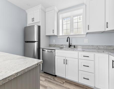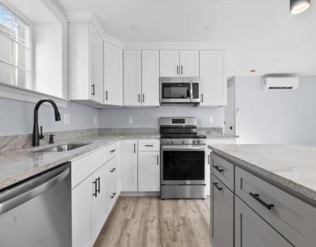 New Construction; Single Family, 6 BRs/3 full baths/2 kitchens. If looking for income generating property or for extended family to live w/you, this home can accomodate either. Enter into charming wainscoted vestibule greeted warmly by light blue walls & nat'l finished hardwood flrs. A stunning kitchen, quartz cntrtops, glass backsplash, LG Stainless applncs convection microwv/oven combo & a contrasting island. Open-concept DR/LR, accentuated by a tiled fireplace & granite hearth. Fantastic sun exposure. Closing out main level-full bath & 2 addt'l rooms for flex space or BRs. A wide staircase, purposely designed leads to 2nd level offering a generously spacious primary suite, Xlg closet, hall laundry, & 2 adt'l BRs. A luxurious 5 pc bathroom delivers a serene spa-like experience. The legal in-law suite is ground lvl - 1 level living no stairs. Peninsula w/quartz counters. XLg living/dining combo. Awesome location in Revere on Malden/Saugus lines easy access to hwys, shops & more!