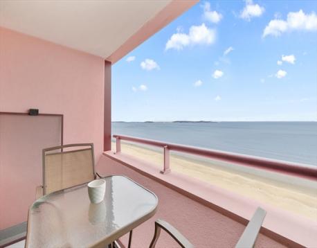 Experience elevated coastal living in this oceanfront penthouse level unit at The St. George, just in time for summer. This exceptionally maintained 1-bedroom, 1-bath residence includes additional den/flex space ideal for a home office or guest area. The light-filled layout offers breathtaking ocean views and seamless flow for relaxing or entertaining. Updated kitchen with stainless steel appliances and granite countertops. Private covered balcony accessible from both the living room and primary bedroom. Enjoy in-unit laundry, deeded covered garage parking, 24-hour concierge, on-site property manager, indoor pool, hot tub, sauna, fitness center, and function space. Located directly on Revere Beach, just 0.6 miles to public transportation, dining, nightlife, and convenient access to Boston.