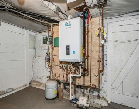 Lovely Colonial offering the perfect blend of modern updates and a functional layout. The main level features high ceilings, hardwood floors, a bright living area with natural light, and a layout that works well for everyday living. The large, eat- in ikitchen opens to a flexible dining or family space with access to a private composite deck, patio, and fenced backyard that features mature landscaping, cherry blossom trees and a large shed for extra storage. Updates include high-efficiency gas heating, tankless hot water, 200-amp electrical, mini-split AC/heat pump, stainless steel appliances, and updated bathrooms.The second floor offers two well-sized bedrooms and a full bath. The third floor features an oversized bedroom with built-ins, high ceilings, closets, and additional storage. For added convenience, a half bath with laundry is located on the main level. All of this conveniently located to Logan, shopping, dining, parks and highway access. This Revere gem is not to be missed